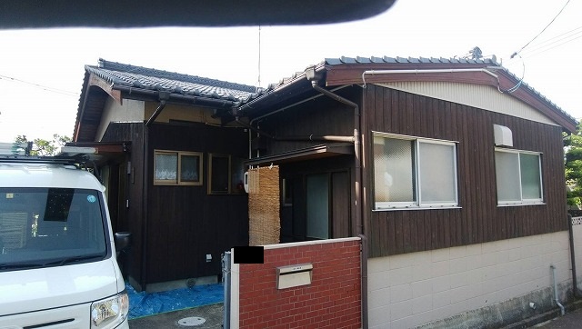 現状と同じような色の塗料をお客様がご希望の為、壁や焼杉・破風を同色にて施工。色あせが気になる状態でしたが新築のように仕上げました!